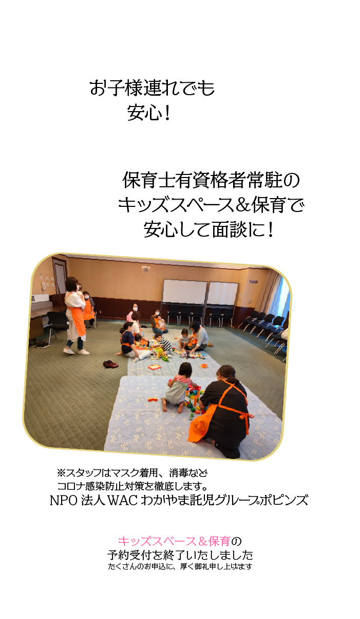※キッズスペース・保育にお子様を預けなくても、お子様連れで面談できます!